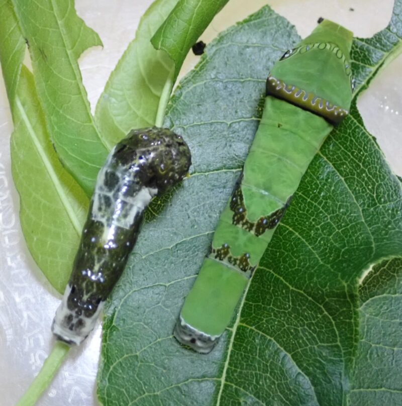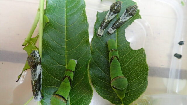 黒アゲハ幼虫 2025.06.08 イモ活フォーラム › イモ活フォーラム › 自慢 › 黒アゲハ幼虫 このトピックには13件の返信、2人の参加者があり、最後にmyu2により6ヶ月、 3週前に更新されました。 黒アゲハ幼虫 自慢 14コメント 6ヶ月、 3週前 1 myu2参加者 2025年6月8日(日) 21時04分25秒 違反報告 このウェットな輝きがとても好きです。 7名いますが全員無事に羽化まで辿り付けますように… Attachments:P6084548.jpg 2 たむら船堀キーマスター 2025年6月8日(日) 21時55分01秒 違反報告 クロいも7匹も!羨ましい限り。 去年のイモ活では2匹だけ。今年は今のところゼロ。 船堀界隈でクロアゲハはすっかり希少種になりました。(泣) 3 myu2参加者 2025年6月10日(火) 19時08分19秒 違反報告 黒イモちゃんがついに脱皮しましたー! めちゃくちゃ可愛いーー! 健やかに育って欲しいです☆彡 Attachments:P6104550.jpg 4 myu2参加者 2025年6月11日(水) 19時42分43秒 違反報告 5齢になった翌日。 昨日はおチビだったのに一晩で随分大きくなりましたー! Attachments:P6114553.jpg 5 myu2参加者 2025年6月13日(金) 19時21分36秒 違反報告 今日も皆元気です。 たくさん食べて大きくなってね♡ Attachments:P6124554.jpg 6 myu2参加者 2025年6月15日(日) 20時47分10秒 違反報告 えー4齢なのに随分大きい✨ まだ脱皮しなさそうです。 早く5齢になって欲しいようなこのヌラヌラをもっと見ていたいような… Attachments:P6154557.jpg 11myu22025年6月17日(火)08時54分23秒>>6 ようやく脱皮しました! モリモリ食べて丸々と太って欲しいです🤤 1件の返信 7 myu2参加者 2025年6月15日(日) 20時57分50秒 違反報告 あー何て可愛いんでしょう💕 何時間でも見ていられる… Attachments: P6154559.mov 8 myu2参加者 2025年6月15日(日) 20時59分33秒 違反報告 ⬆️動画投稿してみましたが大丈夫だったでしょうか… 9 たむら船堀キーマスター 2025年6月15日(日) 22時02分12秒 違反報告 動画ファイルもアップロードできます。 但し、観る人は自分のデバイスにダウンロードして観る形になります。 これはクロいもが葉っぱを食べているところですね。ちゃんと観れました。🐛👍 10 myu2参加者 2025年6月16日(月) 07時56分10秒 違反報告 ありがとうございます😄 わざわざダウンロードして頂くのは何だか悪いですねぇ😓 Attachments:P6164560.jpg 11 myu2参加者 2025年6月17日(火) 08時54分23秒 違反報告 >>6 ようやく脱皮しました! モリモリ食べて丸々と太って欲しいです🤤 Attachments:P6164561.jpg 12 myu2参加者 2025年6月18日(水) 21時07分54秒 違反報告 ついにガトパして前蛹待ち。 もっとずっとニョロニョロしていて欲しかったけどもう新たな一歩を踏み出したみたい😢 嬉しいけど淋しい😢 Attachments:P6184564.jpg 13 myu2参加者 2025年6月20日(金) 20時44分20秒 違反報告 無事に蛹化しました… 随分反ってる気がしますが🙄 無事に蝶になってくれるといいのですが… Attachments:P6204573.jpg 14 myu2参加者 2025年6月20日(金) 20時48分37秒 違反報告 まだ幼虫はいます😄 丸々と太って実に可愛いーー💕 濃い緑が美しいーー💕💕 Attachments:P6204572.jpg 13件の返信を表示中 - 1 - 13件目 (全13件中) 最新 コメントをするにはログインまたは無料会員登録をしてください。 関連トピック 今年最後の春型 3コメント 7ヶ月、 2週前 卵から育てた可愛いナミたち 5コメント 5ヶ月、 4週前 ナガサキアゲハ 羽化 2コメント 4ヶ月、 3週前 以前ご相談したベニスズメガ羽化しました! 2コメント 6ヶ月、 2週前 かなり増えました! 29コメント 3ヶ月、 2週前