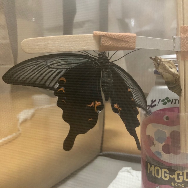 クロアゲハはじめました 2025.07.22 イモ活フォーラム › イモ活フォーラム › 雑談 › クロアゲハはじめました このトピックには8件の返信、2人の参加者があり、最後にtabi_2により4ヶ月、 2週前に更新されました。 クロアゲハはじめました 雑談 9コメント 4ヶ月、 2週前 1 tabi_2参加者 2025年7月22日(火) 14時35分44秒 違反報告 昨日孵化したクロアゲハです。 昨年は2齢から一頭育てましたが、今年は運よく目の前で産卵に出くわしタマゴからの飼育となりました。 葉がだいぶ固くなってきているものの頑張って食べているようです。 うちの方(関東南部)では例年よりシーズンが一か月ほど時期がずれこんでおり、今月中旬になってやっとナミやクロの産卵を見かけるようになりました。 また、個体数は年々減っているように感じます。 皆さんがお住まいの地域ではどうでしょうか? Attachments:Gwbz4rmbEAMUpNv.jpg 2 たむら船堀キーマスター 2025年7月22日(火) 16時03分51秒 違反報告 クロアゲハ、いいですね。羨ましい限り。 うちの近所(江戸川区)では昨年からあまり見かけなくなり、今年はまだ一度も見ていません。(泣) 3tabi_22025年7月22日(火)18時01分21秒>>2 たむら船堀さん、いつもこのサイトにはお世話になっております。 特に越冬蛹や寄生虫の情報はとても参考になりました。 今年まだ一度もというのは今後どうなるか心配ですね、近場に自然下で繁殖に適した場所が出来そちらに集まっている等であればよいのですが🤔 1件の返信 3 tabi_2参加者 2025年7月22日(火) 18時01分21秒 違反報告 >>2 たむら船堀さん、いつもこのサイトにはお世話になっております。 特に越冬蛹や寄生虫の情報はとても参考になりました。 今年まだ一度もというのは今後どうなるか心配ですね、近場に自然下で繁殖に適した場所が出来そちらに集まっている等であればよいのですが🤔 4 tabi_2参加者 2025年7月29日(火) 16時30分11秒 違反報告 クロアゲハ順調に成長しています👀 ・2齢 7/25 ・3齢 7/29 昨年飼育した子はガットパージ直前で約7cmの大きさまで成長したので、今回どこまで大きくなるか期待。 Attachments:IMG_4758.jpgIMG_4764.jpg 5 tabi_2参加者 2025年8月10日(日) 01時45分14秒 違反報告 引き続き順調に成長しています👀 ・4齢 8/2 ・終齢 8/6 昨日計測したところ添付画像の大きさまできました。 ガットパージまであとどれだけ食べて育つか楽しみです。 Attachments:shuurei.jpg 6 tabi_2参加者 2025年8月14日(木) 13時57分22秒 違反報告 成長の経過です👀 ガットパージ直前で7cm弱と立派なアオムシくんになってくれました。 ・前蛹化 8/13 ・蛹化 8/14 一週間ほど待ってから箱を外し頭上に羽化用の捕まる棒などを設置しようと思います。 Attachments:IMG_4795.jpgIMG_4801.jpg 7 tabi_2参加者 2025年8月27日(水) 17時40分54秒 違反報告 7/21より育成の始まったクロアゲハ(♂)が先ほど羽化しました! 散歩好きで何かとひやひやさせられたものの、立派な姿で元気よく飛び立ってくれて感無量です。 皆さんのおイモ達の健康をお祈り申し上げまして、こちらの更新を終えたいと思います。 ご覧いただきありがとうございました。 Attachments:IMG_4817.jpgIMG_4816.jpgIMG_4811.jpg 8 たむら船堀キーマスター 2025年8月27日(水) 22時24分11秒 違反報告 立派なクロアゲハですね。 おめでとうございました。㊗️🎉 9tabi_22025年8月27日(水)23時12分42秒>>8 ありがとうございます🙏 今回もたむらさんの飼育ノウハウを参考にさせていただきました。 1件の返信 9 tabi_2参加者 2025年8月27日(水) 23時12分42秒 違反報告 >>8 ありがとうございます🙏 今回もたむらさんの飼育ノウハウを参考にさせていただきました。 8件の返信を表示中 - 1 - 8件目 (全8件中) 最新 コメントをするにはログインまたは無料会員登録をしてください。 関連トピック ナミアゲハの共食い 2コメント 4ヶ月、 2週前 ☆越冬蛹☆ 25コメント 1ヶ月、 1週前 初の飼育中です 8コメント 6ヶ月前 アゲハの蛹の色が、周囲の匂いで決まるという説 3コメント 3ヶ月、 1週前 無事羽化しました! 2コメント 5ヶ月、 2週前