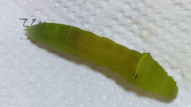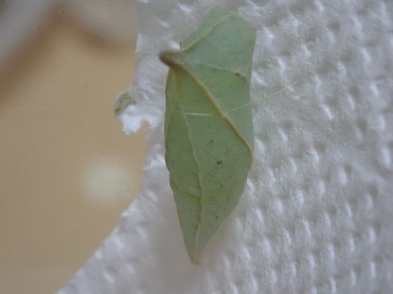 蛹化しそうなアオイモちゃん 2025.08.03 イモ活フォーラム › イモ活フォーラム › 質問 › 蛹化しそうなアオイモちゃん このトピックには3件の返信、2人の参加者があり、最後にmyu2により5ヶ月、 1週前に更新されました。 蛹化しそうなアオイモちゃん 質問 4コメント 5ヶ月、 1週前 1 myu2参加者 2025年8月3日(日) 08時26分23秒 違反報告 今朝見たら薄い黄緑に変わっていました。 蛹化して貰うべく蛹カップに入って貰おうと思うのですがこの状態はもう葉を食べる事はないですよね…? お腹を空かせたら可哀想と思ってしまいました。 ナミイモちゃんのガトパ後の状態と同じでしょうか。 Attachments:250803073559766.jpg 2 たむら船堀キーマスター 2025年8月3日(日) 08時56分12秒 違反報告 透明感のある緑色であれば、蛹化間近です。 アオイもはほとんどの場合、食草を離れることなく、適当な角度の葉っぱで蛹化します。 ガットパージも少々異なります。 その辺のことはこちらの記事に書いてあるので、ご覧になってみてください。 アオスジアゲハの幼虫飼育ガイド|見つけ方から蛹化まで この記事ではアオスジアゲハ幼虫の食べ物、見つけ方、毒性、育て方などについて書いています。この記事をご覧になれば、アオスジアゲハの幼虫に関する基本的なことだけでなく、他のアゲハチョウと違うところもわかります。かわいい画像、動画もご覧ください。 3myu22025年8月3日(日)11時58分41秒>>2 ありがとうございます😄 本当は葉で蛹化したい所を蛹カップに入って貰って申し訳ないですね😣 ナミイモちゃんより5齢の期間が長く物凄い量の葉を食べました。 ベランダのクスノキの葉がなくなるんじゃないかと…💦 無事に蛹化して寄生がない事を祈ります。 1件の返信 3 myu2参加者 2025年8月3日(日) 11時58分41秒 違反報告 >>2 ありがとうございます😄 本当は葉で蛹化したい所を蛹カップに入って貰って申し訳ないですね😣 ナミイモちゃんより5齢の期間が長く物凄い量の葉を食べました。 ベランダのクスノキの葉がなくなるんじゃないかと…💦 無事に蛹化して寄生がない事を祈ります。 4 myu2参加者 2025年8月5日(火) 10時15分55秒 違反報告 昨日、無事に蛹化しました✨ Attachments:P8054610.jpg 3件の返信を表示中 - 1 - 3件目 (全3件中) 最新 コメントをするにはログインまたは無料会員登録をしてください。 関連トピック ベニスズメガの幼虫 10コメント 7ヶ月、 1週前 寄生なのか模様なのか 2コメント 3ヶ月、 2週前 前蛹になる前に落下 7コメント 4ヶ月、 4週前 質問 10コメント 4ヶ月、 2週前 寄生…? 5コメント 3ヶ月、 3週前