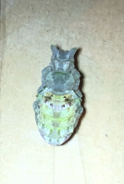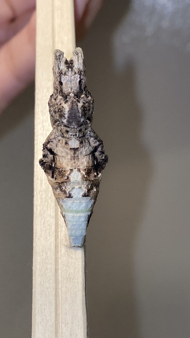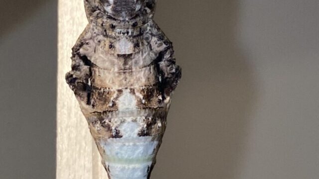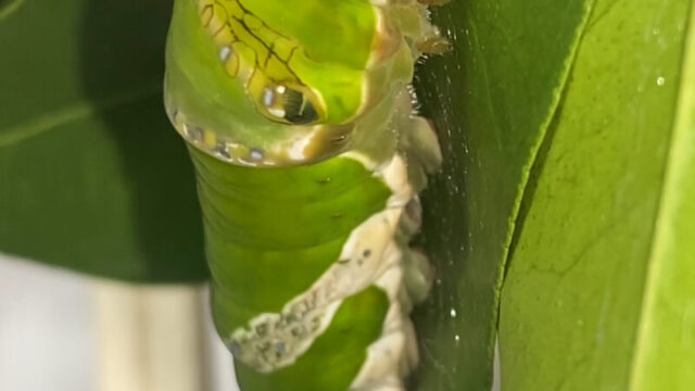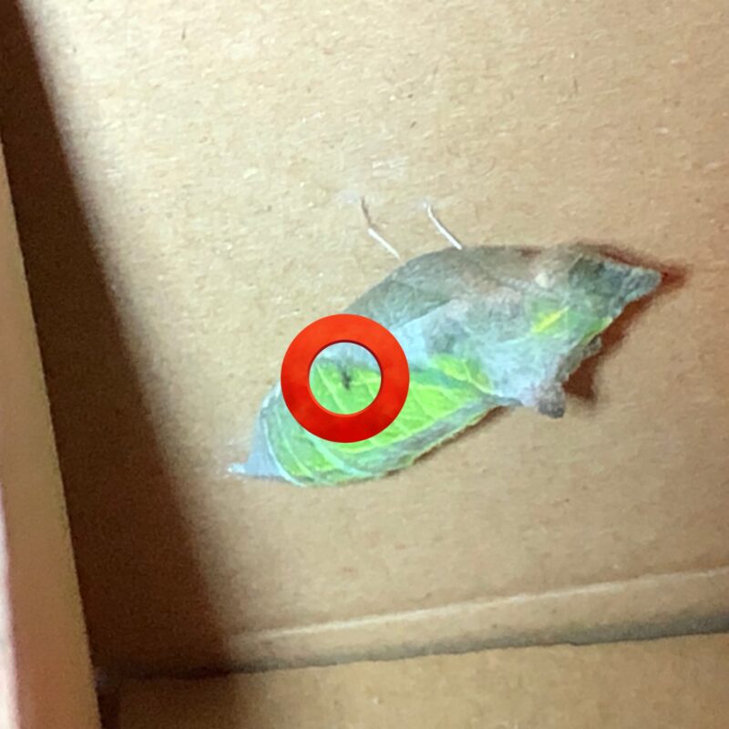 また、頭部〜胸部/口元が茶色ぽくなっているように見えます。これはナガサキアゲハが前蛹になる際に色づくものでしょうか?ナガサキアゲハの飼育が初めてなもので、質問させていただきました。