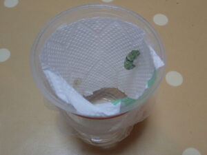 先ほど、お尻を葉っぱから退けて、湿ったフンをしようとしているところを目撃しました。