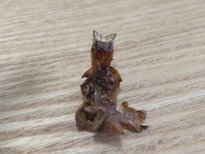 ぶじに羽化したのでしょうか 2025.08.27 イモ活フォーラム › イモ活フォーラム › 質問 › ぶじに羽化したのでしょうか このトピックには18件の返信、3人の参加者があり、最後にruriruriにより4ヶ月、 1週前に更新されました。 ぶじに羽化したのでしょうか 質問 19コメント 4ヶ月、 1週前 1 ruriruri参加者 2025年8月27日(水) 12時04分51秒 違反報告 はじめまして。 先月の24日に蛹になっているところを目撃して、ずっと経過を追っていました。 今月の18日に海外に行って帰宅したらこのような状態になっていました。 出国前はもっとツヤツヤしてて、白っぽかった状態から徐々に赤みが増してきているようでした。 Attachments:IMG_20250827_103124555.jpg 2 ruriruri参加者 2025年8月27日(水) 12時15分56秒 違反報告 8月17日の様子です。 Attachments:Screenshot_20250827-1209162.jpg 3 ruriruri参加者 2025年8月27日(水) 12時17分19秒 違反報告 8月1日の様子です Attachments:IMG_20250801_063113449.jpg 4 ruriruri参加者 2025年8月27日(水) 12時22分40秒 違反報告 七月二十四日の様子です。 Attachments:IMG_20250724_075649771_MP.jpg 5 ruriruri参加者 2025年8月27日(水) 12時23分59秒 違反報告 7月23日の様子です。 Attachments:IMG_20250723_063014756.jpg 6 ruriruri参加者 2025年8月27日(水) 12時25分44秒 違反報告 7月22日の様子です。 Attachments:IMG_20250722_164243051_MP.jpg 7 たむら船堀キーマスター 2025年8月27日(水) 15時10分52秒 違反報告 今の時期なら1週間程度で羽化します。 脱け殻しか残っていないのであれば、無事に羽化したと見るのが妥当でしょう。🦋 8ruriruri2025年8月27日(水)15時23分31秒>>7 お返事ありがとうございます。 そのような情報を目にしていたので羽化するのか心配でした。 3週間以上かかっていると思います。 ぶじに羽化して飛び立って行ったのなら本当に嬉しいです。 抜け殻がかなりめちゃくちゃな状態なのですが台風の影響でボロボロになってしまっただけでしょうか。 壁に付着している黄色い汁?は蛹便と呼ばれるものですか? 1件の返信 8 ruriruri参加者 2025年8月27日(水) 15時23分31秒 違反報告 >>7 お返事ありがとうございます。 そのような情報を目にしていたので羽化するのか心配でした。 3週間以上かかっていると思います。 ぶじに羽化して飛び立って行ったのなら本当に嬉しいです。 抜け殻がかなりめちゃくちゃな状態なのですが台風の影響でボロボロになってしまっただけでしょうか。 壁に付着している黄色い汁?は蛹便と呼ばれるものですか? 9 たむら船堀キーマスター 2025年8月27日(水) 23時04分27秒 違反報告 >抜け殻がかなりめちゃくちゃな状態なのですが台風の影響でボロボロになってしまっただけでしょうか。 脱け殻は通常ここまでボロボロにはなりません。 外部から何らかの力が働いたのでしょう。 >壁に付着している黄色い汁?は蛹便と呼ばれるものですか? 脱け殻が破壊された時、中に溜まっていた蛹便が飛び散ったのかもしれません。 10ruriruri2025年8月28日(木)17時40分35秒>>9 お返事ありがとうございます。 そうですか。何かがぶつかって蛹が壊れてしまった可能性があるのですね。 帰宅したら蛹がまだ残っていたので思わず自宅に持って帰ってしまいました。 思っていた以上に取り外しがしにくくて、びっくりしました。 蝶が出てくる部分がちゃんと開いている?から、やっぱりぶじに羽化したんですね。 中に微妙に何か残っているような気もしますが、これは何でしょうか。 蛹を取っておく場合、普通に保管しても大丈夫なものでしょうか。 1件の返信 10 ruriruri参加者 2025年8月28日(木) 17時40分35秒 違反報告 >>9 お返事ありがとうございます。 そうですか。何かがぶつかって蛹が壊れてしまった可能性があるのですね。 帰宅したら蛹がまだ残っていたので思わず自宅に持って帰ってしまいました。 思っていた以上に取り外しがしにくくて、びっくりしました。 蝶が出てくる部分がちゃんと開いている?から、やっぱりぶじに羽化したんですね。 中に微妙に何か残っているような気もしますが、これは何でしょうか。 蛹を取っておく場合、普通に保管しても大丈夫なものでしょうか。 Attachments:IMG_20250828_173144800.jpg 17imoimo2025年8月30日(土)18時38分30秒>>10 蛹殻の崩れ方から見て恐らく寄生虫が蛹を食い破って出て来たのではないでしょうか😥 ただ羽化出来ずに死んでしまっただけなら形を保ったままのはずですし、きちんと羽化して殻だけ崩れたなら全体的にもっとカラッとしています。このように上半分に肉感が残った蛹殻にはならず、腹部のヒダやハッチ部分など元々の繋ぎ目のような部分が切り取り線の様に切れたりするイメージでしょうか🤔 この蛹殻にはそう言った「自然な崩れ方」が見受けられず、不自然にグチャっとしているので…💦 1件の返信 11 たむら船堀キーマスター 2025年8月28日(木) 19時44分21秒 違反報告 これは何でしょうね。 羽化する前に蛹が破壊されて、残骸が乾燥したようにも見えます。 わかりません。 蛹の保管はそのままで大丈夫です。 12ruriruri2025年8月28日(木)20時15分09秒>>11 お返事ありがとう